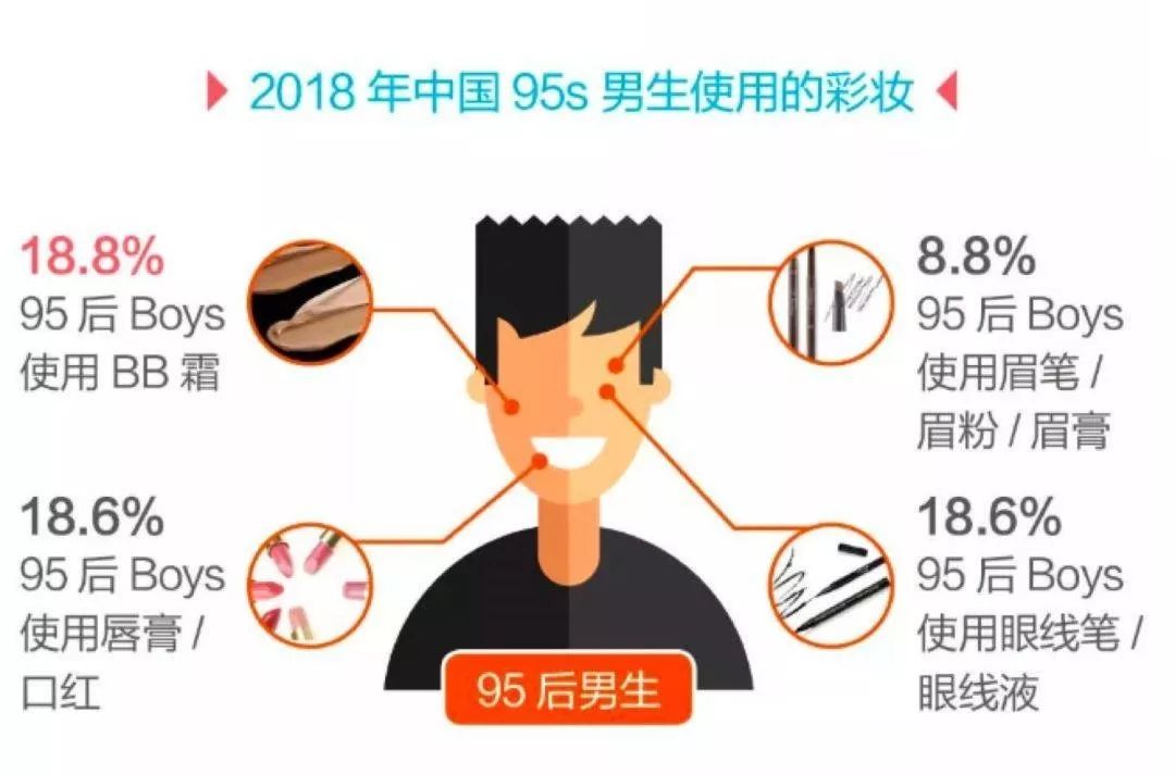 不仅如此,随着男性对彩妆的使用习惯的成熟,使用的品类已经逐渐由底妆和眉型等基础入门步骤向眼妆和唇妆延伸。根据艾瑞咨询的数据,2018年中国95后男生使用唇膏或口红的比例为18.6%,直逼BB霜18.8%的占比。另据CBNDATA消费大数据,更有精致的猪猪男孩,对打造立体妆容的修容产品如高光、蜜粉等也有关注。
