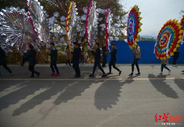 络绎不绝的送行人群,在路上,投下悲伤的影子。