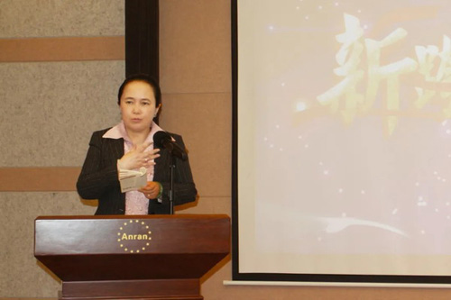 安然公司中华区营运总裁边建华女士代表安然集团的大后方伙伴对大家的到来表示欢迎,告诉大家实现百亿安然的波澜壮阔是前线伙伴和后方伙伴共同的目标和方向,相信通过大家齐心协力的共同配合,安然定会成为“百亿、五百强、五百年”的企业!