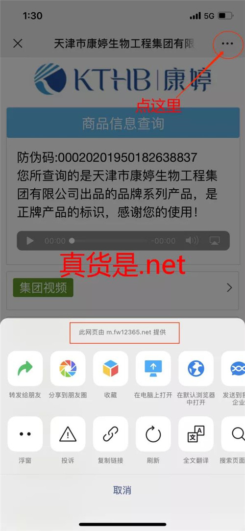 4、防伪码微信识别的查询网站不同,真货是m.fw12365.net,假货是m.fw12365.me