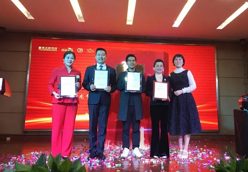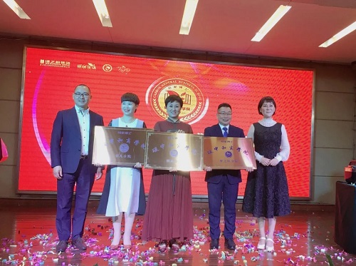 ▲院长戴嵘与技术院长毛文龙为梦之队分院、精典分院和非凡分院授牌,吕星佑先生、房开侠女士及梁菲芬女士上台接受颁牌并发言。