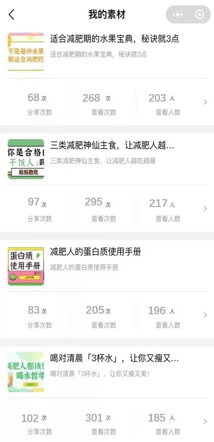 1.我的素材分享和统计功能——及时了解顾客偏好,精准个性化营销