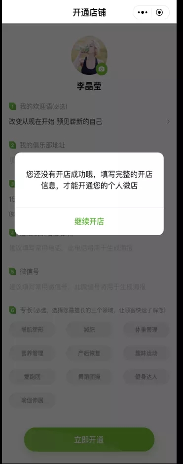 2.开店提醒和身份认证——开店提醒、一个微信号可开多家店、身份认证解绑功能