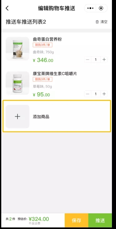3.购物车功能升级——可以新增购物车推送列表中的商品,提高成交率