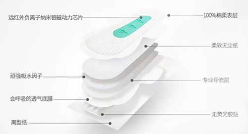 卫生巾里的芯片均有远红外、磁动力、负离子、纳米银等成分,磁动力芯片就是在这个环节加入。