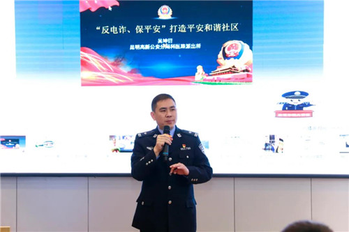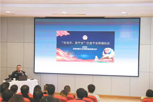 道道网讯 为扩大反诈骗宣传的影响力和覆盖面,切实有效提升企业防范诈骗的意识和能力,2021年11月19日,昆明高新公安分局科医路派出所民警亲临理想华莱集团昆明公司,开展“反电诈、保平安”打造平安和谐社区反诈防诈宣传活动。