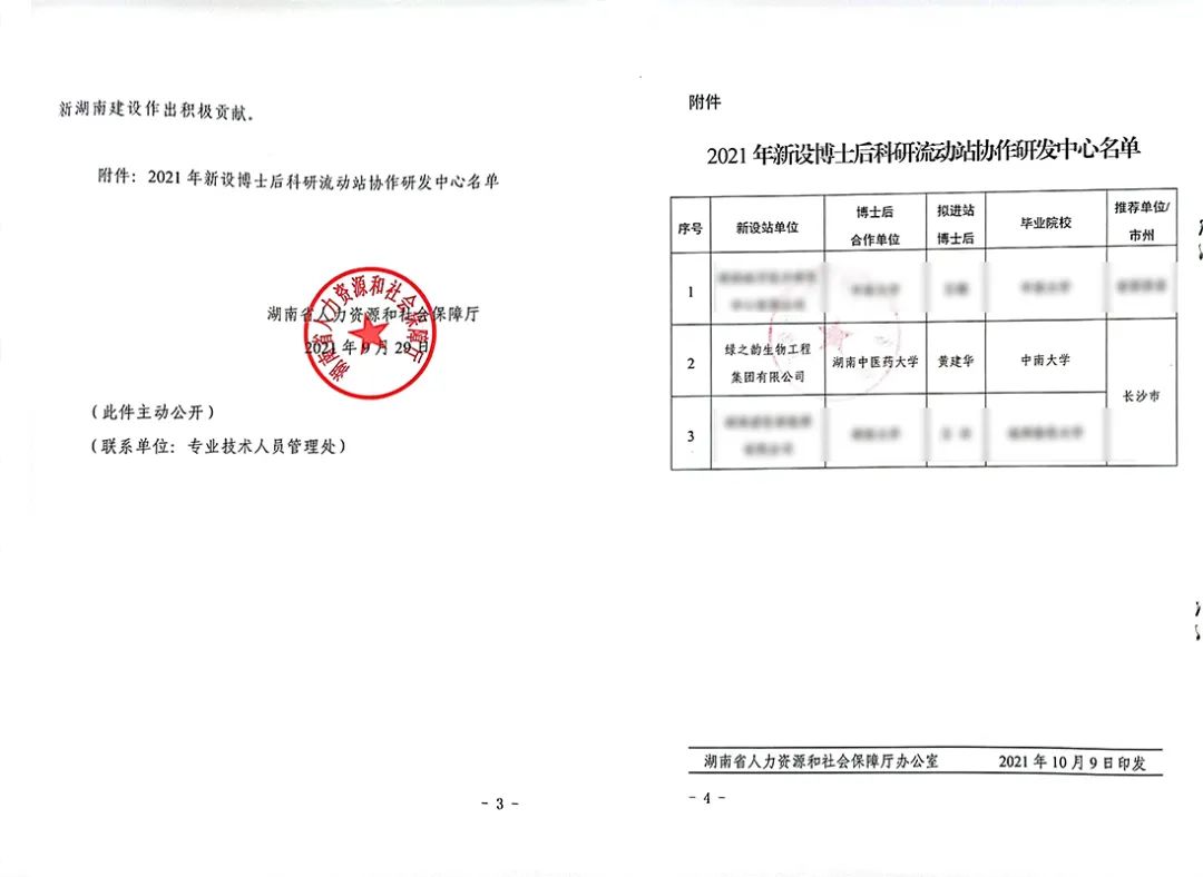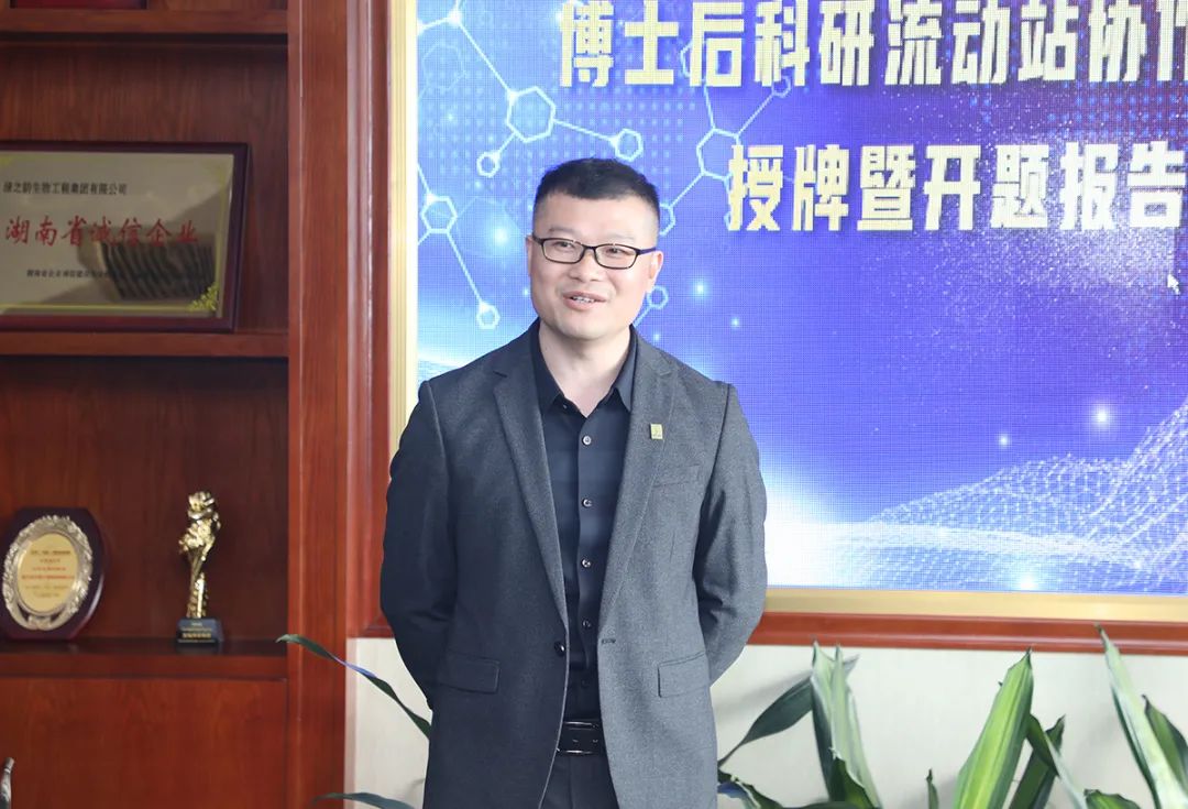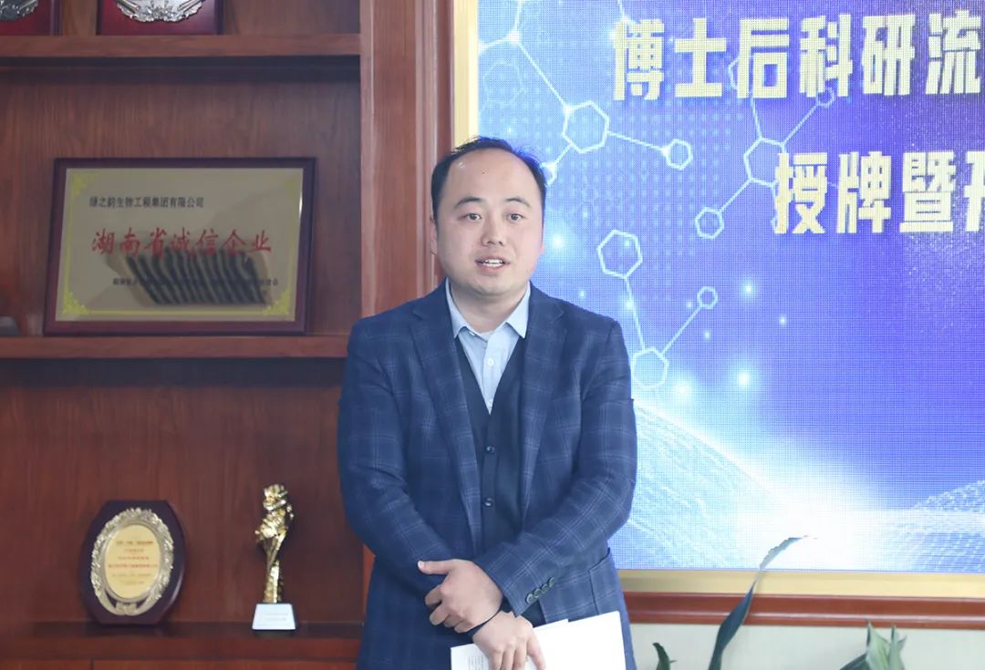 湖南省人社厅专业技术人员管理处三级主任科员李邓鹏为绿之韵集团颁授“博士后科研站”牌匾