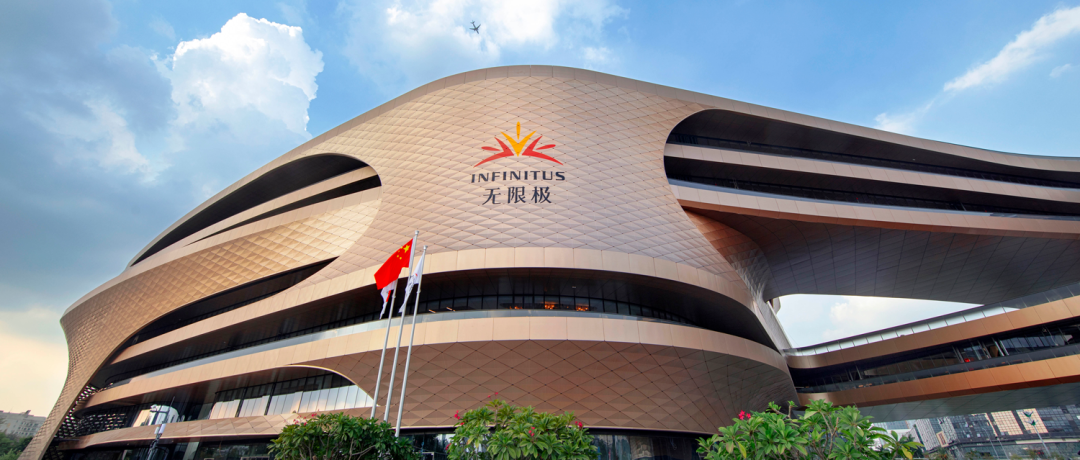 总面积达18.5万㎡,由2座8层高的建筑组成。中间还有连廊相连,从上面看,就是一个无限极“∞”的形状。