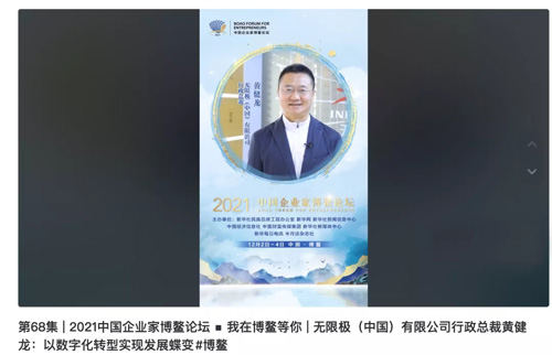 同时,新华网财经还发布了无限极(中国)有限公司行政总裁黄健龙先生即将代表无限极参加2021中国企业家博鳌论坛的预告视频,黄健龙先生表示:以数字化转型实现发展蝶变,12月2日-4日,海南博鳌,不见不散!