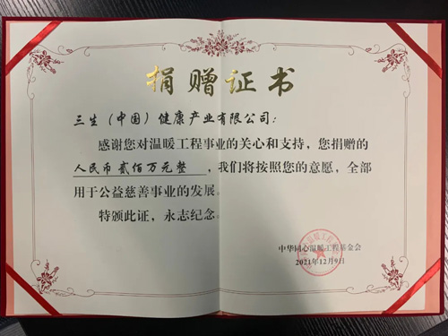 此次大会上,三生(中国)健康产业有限公司向中华爱心温暖工程基金会捐款200万元。一直以来,三生坚持“爱心1+1”的公益理念,迄今为止已累计捐款捐物超过1亿元。此次向基金会捐赠200万元用于公益慈善事业的发展,正是三生积极履行企业社会责任,践行公益理念的又一行动。未来,三生将继续汇聚更多爱的力量,引领更多人和企业投身社会公益事业,通过自己的行动,帮助真正需要帮助的群体,为社会做出应有的贡献。