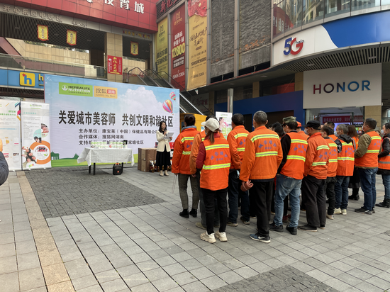 道道网讯 12月10日,康宝莱(中国)保健品有限公司湖南分公司与南家塘社区在长沙达美美食街入口广场前举行了“关爱城市美容师”公益活动启动仪式,活动主题为“关爱城市美容师,共创文明和谐社区”。
