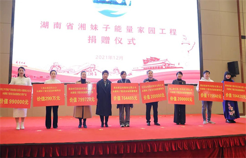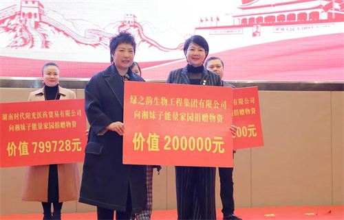 湖南省妇联党组书记、主席黄芳宣布湘妹子能量家园工程正式启动。据悉,“湘妹子能量家园”是由湖南省妇联倾心打造的一款公益型App平台。该项目充分利用大数据科技和积分制手段,通过活动载体鼓励引导村(社区)居民积极投身到乡村振兴、环境整治、家风文明、互助帮扶、创新就业等工作中来,从而提升乡村治理效能,实现政府治理和社会调节、居民自治良性互动,达到共建、共治、共享的目的。会议现场,湖南省妇联还与湖南省邮政分公司共同签订了湘妹子能量家园运营合作框架协议,与17家省级重点医院结成了湘女健康医联盟。爱心企业代表纷纷慷慨解囊,举牌捐赠,绿之韵集团党委书记刘云代表绿之韵集团捐赠价值20万元的爱心物资,助力湘妹子能量家园项目。