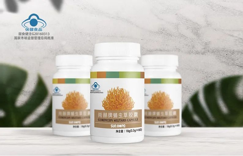 以蛹虫草粉为主要原料制成的保健食品,经动物功能试验证明,具有增强免疫力的保健功能。