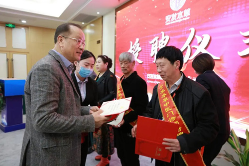 高教授为安发本草中医门诊部第一批名老中医师颁发聘书并合影留念