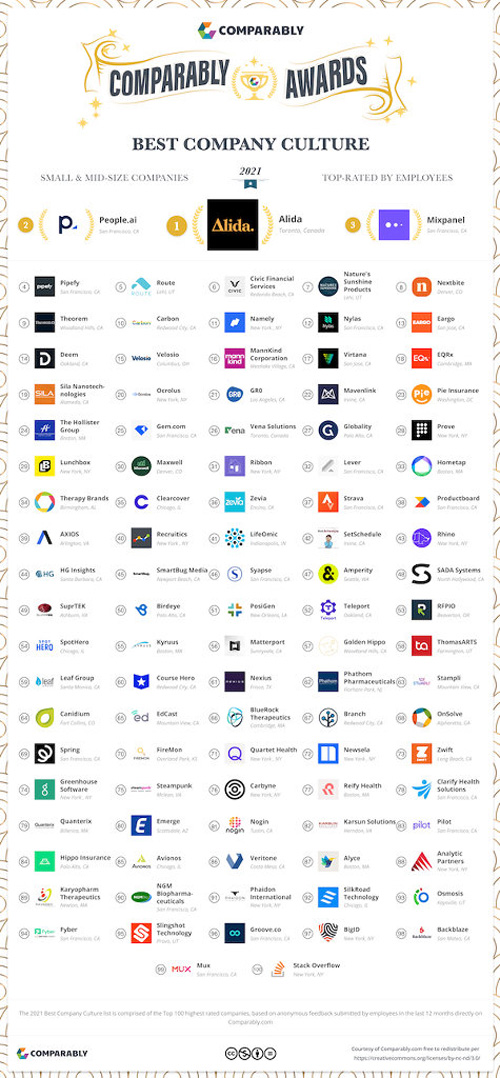 企业文化大奖由可比网站公布,可比是一个领先的公司文化和企业品牌声誉平台,是雇主品牌使用最多的SaaS平台之一,它是提供值得信赖的企业文化数据的第三方网站。本年度最佳公司文化奖由现任员工在Comparably.com上针对企业16个核心文化指标进行匿名评级,从薪酬制度、职业发展规划、领导能力、工作环境以及福利机制等方面,通过10分制打分规则累计评算。最终数据集由70,000家公司的1.5亿个评分汇编而成,其影响力深远,也极具话语权。