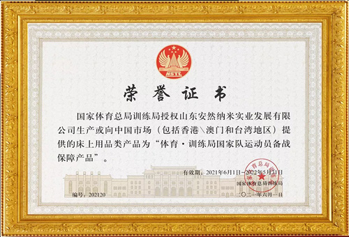 ❖“体育·训练局国家队运动员备战保障产品”授权证书