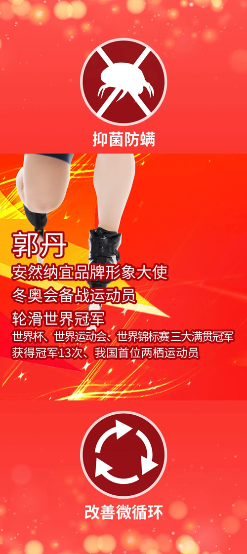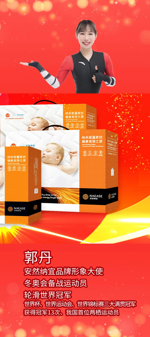 纳米与能量的结合赋予安然纺织品新的定义,充满温暖与科技的纳宜纺织品成就了安然纳宜的冠军品质。