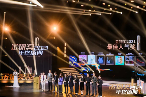 经过为期1个多月的评选,由70余名专业评委交叉打分、结合由金物奖联合复旦大学打造的“新国货1000”指数,金物奖组委会评审出了452件新国货,入围《最佳设计奖》、《技术创新奖》、《概念创新奖》、《最佳营销奖》、《最具潜力奖》、《最佳人气奖》6个奖项,并进行最后的奖项角逐。东方素养肽素乳(黄金肽粒款)最终以28.6W票数力压群雄,斩获金物奖2021最佳人气奖TOP10。