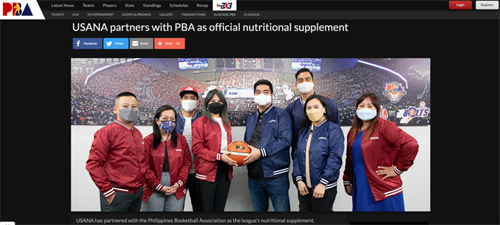 USANA获得菲篮协官方营养补充品品牌的标示菲篮协是继美国泳协、美国滑板协会之后,又一家在今年与USANA建立合作伙伴关系的体育组织。