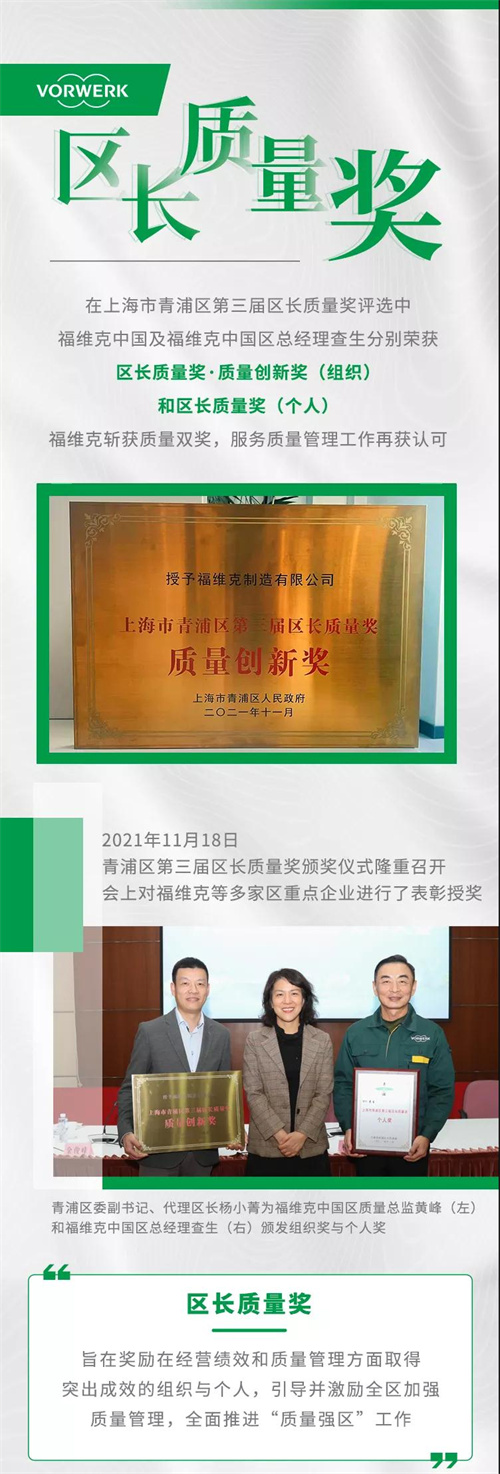 福维克摘得第三届区长奖质量奖•质量创新奖