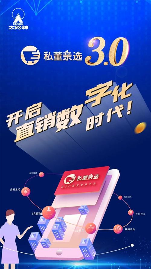 早在2019年3月,太阳神就率先完成了模式升级,推出智慧新零售模式;2020年5月,太阳神将“融入数字时代,引领智慧零售产业”上升至使命的高度,以此作为企业发展的长期核心策略;2020年12月,太阳神私董亲选平台正式上线,完成了私董亲选、智创加油站,灸之尊智慧社区店三大平台的建设;并根据时代发展,不断迭代升级。2021年9月,私董亲选3.0全新上线,以消费者为中心,推出6A级养生方案库;在数字化赋能模块,增加数字化应用场景,促进消费者裂变与入网,全面赋能经销商,让创业变得更加“简单、智能、触手可得”!