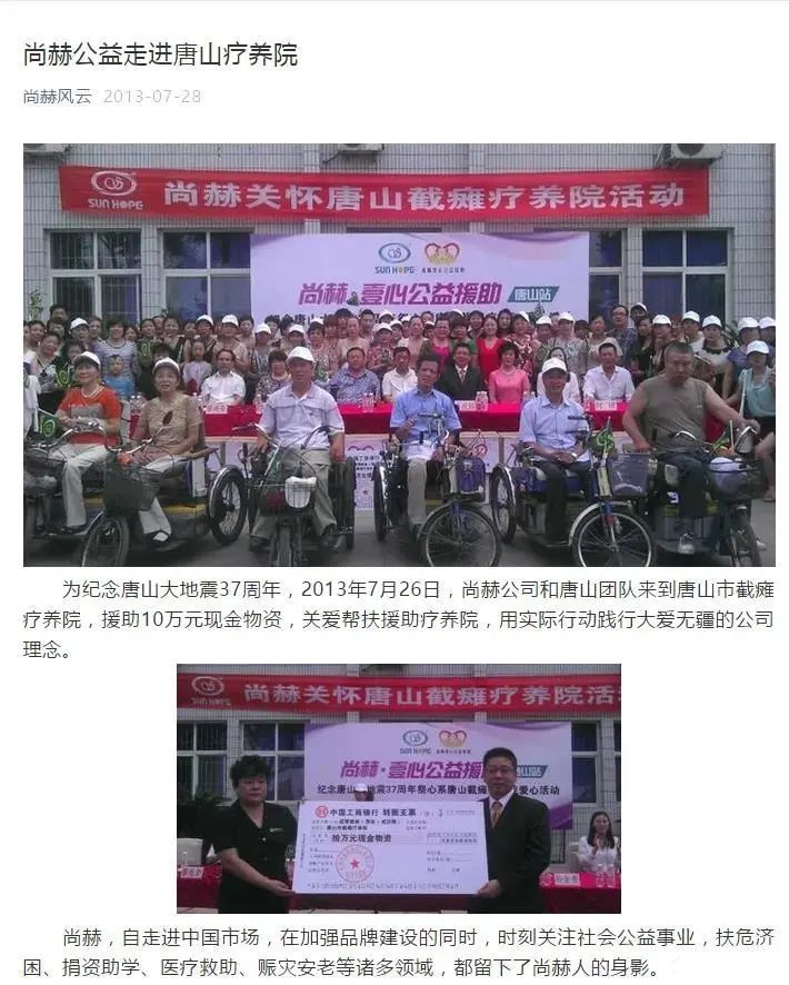 2013年7月28日,尚赫风云微信公众平台推送了第一篇文章——《尚赫公益走进唐山疗养院》。此后,尚赫将公益奉献落实到社会生活的方方面面,不断加大社会捐助力度,倾注了尚赫人“爱”的光辉。