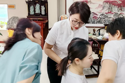 分公司培训师向参与活动的新时代人详细讲解了智能健康镜、耳穴探测仪、扶阳罐等健康设备的知识体系和运用方案等方面的内容,并进行实操演练。