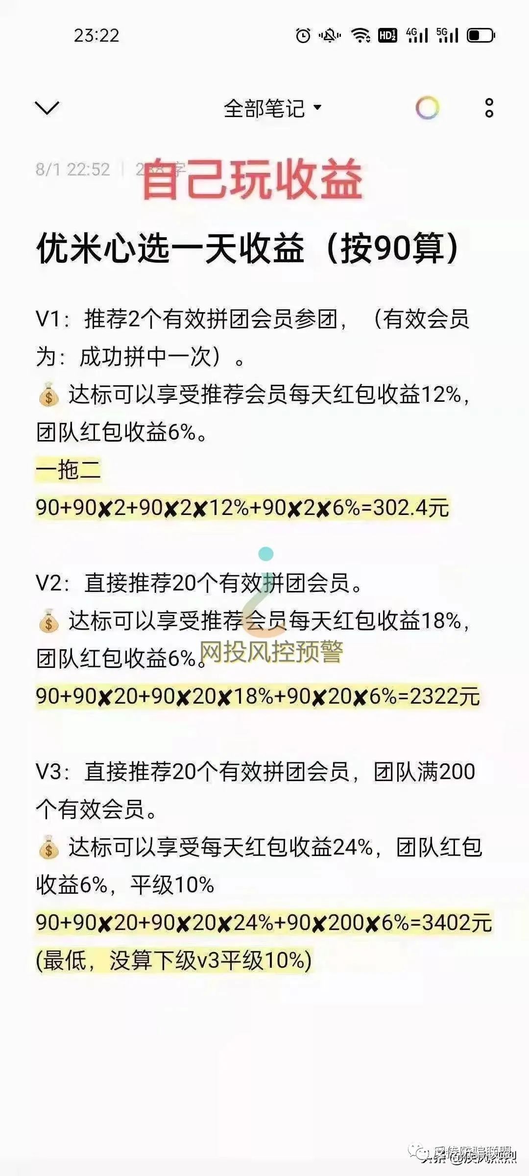 近日,网投风控预警收到相关知情人士提供的材料称,“丰农心选青岛供应链有限公司”涉嫌诈骗,该公司已拼团返利为由,并且有国企入股、张信哲助力,诱导会员往“优米心选”APP进行充值,13 号开始已支付宝风控为由,不让会员提现。该公司会员涉及全国各地几十万人,涉及金额达十几亿。