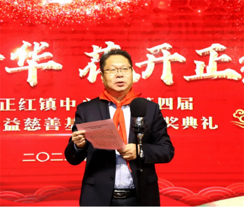 道道网讯 1月9日上午,“绿叶芳华花开正红”第四届“徐建成公益慈善基金会”颁奖典礼在正红镇中心小学报告厅隆重举行。苏州市政协委员、苏州市滨海商会会长、绿叶科技集团董事长、徐建成公益慈善基金会创始人徐建成先生对正红镇贫困学子、优秀师生进行资助和奖励。滨海县委教育工委书记,教育局党委书记、局长杨光出席典礼并致辞。