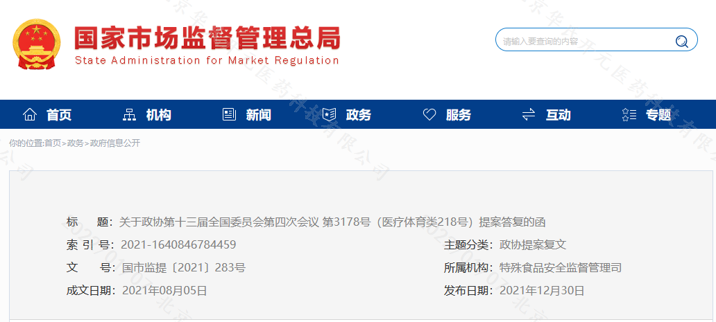 道道网讯 近日,国家市场监督管理总局发布了《关于政协第十三届全国委员会第四次会议 第3178号(医疗体育类218号)提案答复的函》,就鲁晓明委员提出的《关于推动特殊医学用途配方食品产业健康发展的提案》给出了答复。