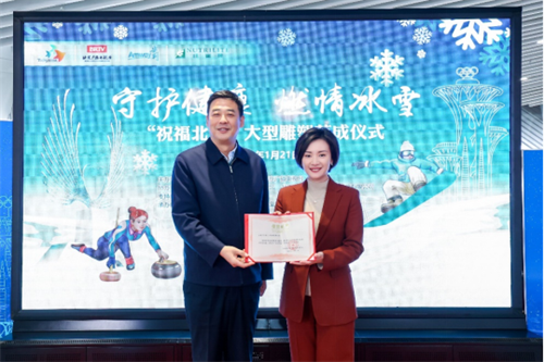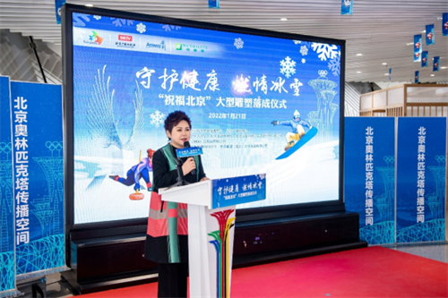 1月21日,北京广播电视台、北京奥运城市发展促进中心、安利公司,携手著名艺术家袁熙坤,在北京奥林匹克塔揭幕落成“守护健康燃情冰雪-祝福北京”主题雕塑。