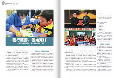 道道网讯 近日,艾多美登上中国儿童少年基金会---中国少儿公益会刊,刊中大篇幅报道了艾多美“公益慈善教育项目”及艾多美公益文化理念,对艾多美的社会公益慈善项目做出肯定。