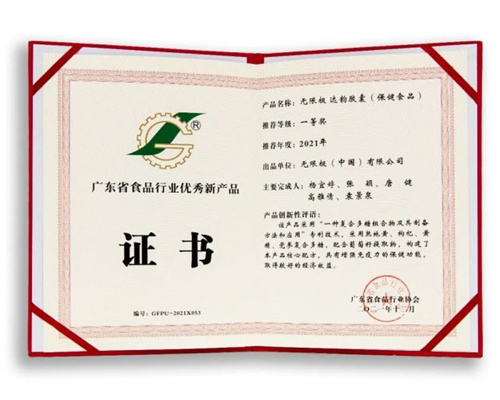 无限极牌悦扬胶囊荣获“2021广东省食品行业优秀新产品一等奖”