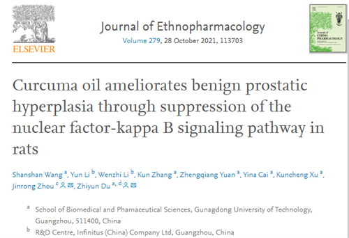 其中,《Curcuma oil ameliorates benign prostatic hyperplasia through suppression of the nuclear factor-kappa B signaling pathway in rats》发表于SCI核心期刊《Journal of Ethnopharmacology》。该研究结果发现姜黄油对良性前列腺增生有良好的治疗效果,而姜黄油能增加番茄红素的稳定性。