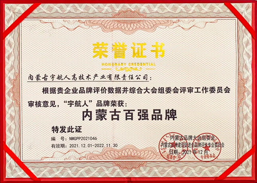 宇航人公司凭借优质的产品、良好的口碑以及较大的社会贡献,再次被评为内蒙古百强品牌,同时宇航人公司被评选为内蒙古品牌建设标杆企业。
