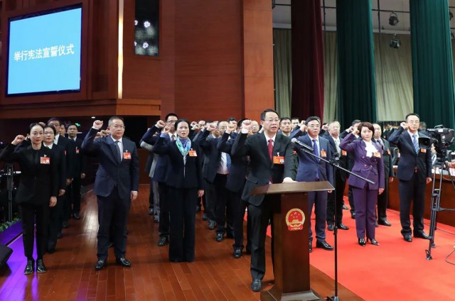 在圆满完成各项议程后,长沙市十六届人大一次会议举行闭幕会。大会以电子表决的方式,表决通过了关于设立长沙市第十六届人民代表大会专门委员会的决定,表决通过了长沙市第十六届人民代表大会各专门委员会主任委员、副主任委员、委员名单,表决通过了大会各项决议。其中,胡国安代表当选十六届长沙市人大农业与农村委员会委员。随后,闭幕会举行庄严的宪法宣誓仪式。