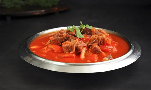 牛肉是肉类中含铁较多的,中医讲也是补气血,调脾胃上好的食物,且热量也不高。补铁还有一点需要注意就是补充维生素C,因为维生素C可以促进铁的吸收,加大铁被人体的利用率和吸收率,这里添加的西红柿妙处就在这里,西红柿富含维生素C,还含有可以抗衰老防癌的番茄红素。还有就是香菜,香菜属热性,可用来助汗排湿。所以这款汤品营养互补,荤素搭配,可以说是滋补良品。