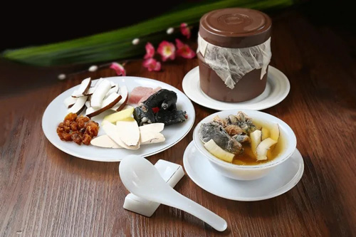 乌鸡历来是女性滋补身体的上选,乌鸡汤可以起到补肾益气的作用,并且还有补血的功效,也能够起到健脾养胃的作用。加上了山药更突出冬季进补的效果。山药的柔润和乌鸡的鲜美相得益彰,汤汁乳白鲜味柔和。从营养上讲,山药具有健脾、除湿、补气、益肺的作用,可逐渐恢复脾胃运化功能,从根本上帮助女性彻底的健康瘦身,红润肌肤。加上少许木耳和枸杞,除增加营养的作用之外,木耳还可以起到清除油脂,体内垃圾的作用。