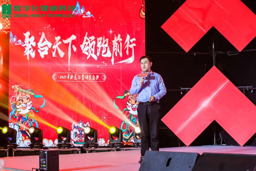 绿之韵集团市场营销中心总经理戴三省代表绿之韵集团上台致辞。他向前来参加此次庆典的各位领导、专家、贵宾以及来自全国各地的家人们表示热烈的欢迎!他表示:数字化健康科技,是集团战略布局的重要组成部分。数字化健康科技始终紧跟集团公司大健康产业发展战略,深耕数字化健康管理领域,积极向广大消费者传递“清、通、养健康管理工程”的先进理念,并取了喜人的成绩和成效。他衷心希望所有市场家人们能够一如既往地关注、支持并融入绿之韵事业,绿之韵也将继续强化各方面的服务和支持,努力为大家提供一个稳健、规范、可持续发展的事业平台,也希望在未来的日子里大家能同心协力、砥砺前行,为健康中国贡献自己的力量,共同谱写新的辉煌!