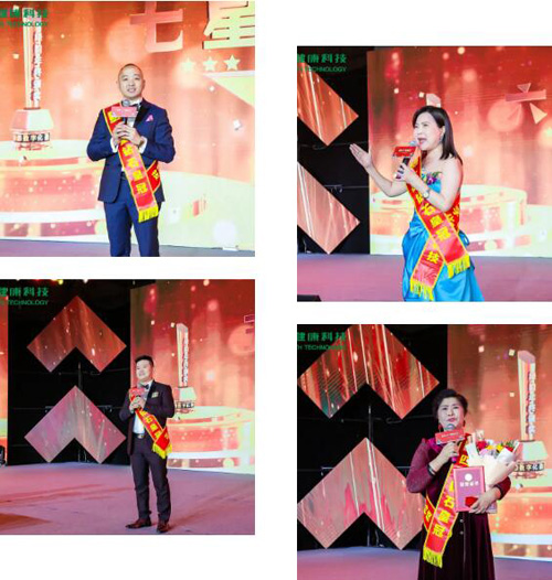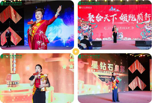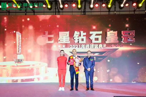 风云冕功勋,名满誉星徽。2021年,一大批优秀的事业伙伴积极践行公司战略,在市场上奋力拼搏,创造了令人瞩目的市场业绩,用自己的实际行动,成功树立了成功的典范。今天,这些获奖者一袭盛装,风度翩翩地走上舞台接受荣耀,荣获表彰。他们难掩成功的喜悦,分享着与数字化健康科技的故事,他们是绿韵数字化健康科技事业伙伴的优秀代表,他们的创业经历更是追梦、筑梦、圆梦的典范,他们让整个会场星光熠熠,掌声欢呼声此起彼伏。