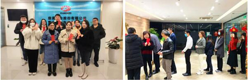 当天,康美药业总部及各分子单位纷纷向员工派发开门红包,现场一片欢乐喜庆。