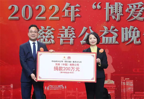 完美公司弘扬伟人孙中山的“博爱”精神,自1996年起开始支持慈善万人行活动,今年再次捐款200万元,累计捐款总额逾3700万元,为中山慈善事业付出不懈努力。