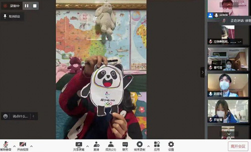 “云支教”的大学生与小学生连线一起制作“冰墩墩” 图片来源:尚赫公益基金会