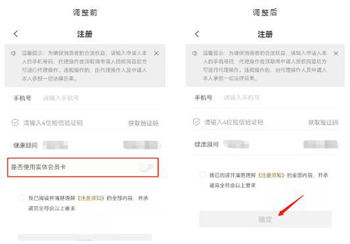 改进举措:当会员选择“新客注册”,取消选择“是否使用实体卡”,简化操作流程。