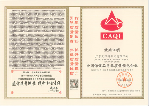 荣获全国质量检验稳定合格产品:生物健口服液、金菇口服液、快清胶囊、清之颜牌清畅美颜胶囊、多种维生素镁锌片、辅酶Q10维生素E软胶囊、金络速通。 优质产品 关爱生命 34年来,太阳神始终保持着高度的社会责任感、先进的生产技术、严谨的质量控制体系,并不断完善、不断迈进。