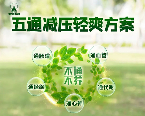 随着时代的发展,消费者对养生的需求越来越多元化、精细化、系统化,秉承为老百姓提供越来越优质的养生服务的理念,太阳神推出6A级养生方案库,打造行业养生新标准,而这其中作为太阳神现代养生方案的旗手型方案,五通减压轻爽方案也最能代表太阳神养生的方案化、科学化、产品化和生活化的现代养生理念。