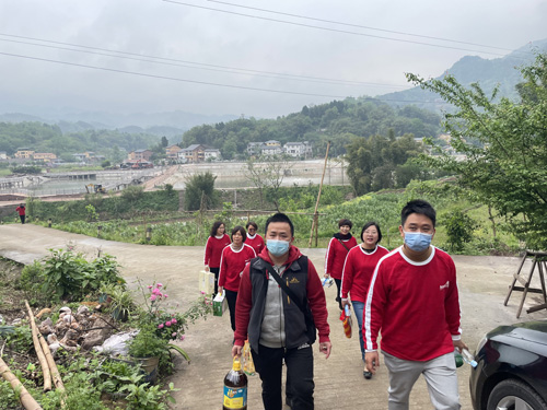 刘子铭(右一)和安利志愿者一起前往綦江结对贫困学子
