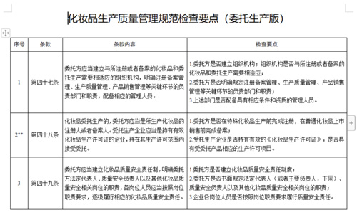 而对于生产企业来说,化妆品生产质量管理规范检查要点(实际生产版)更是要求生产企业设立质量安全负责人和质量管理部门负责人,但是跟以往要求比起来,《征求意见稿》整体对生产企业来说影响较小。
