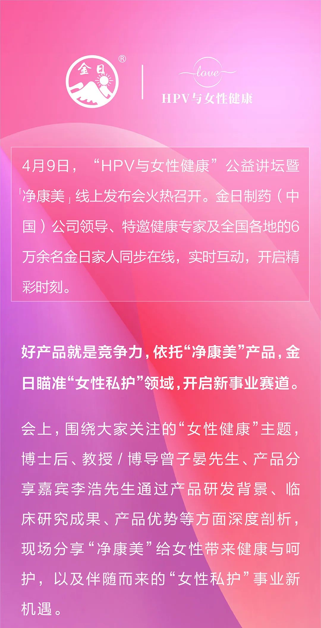 金日:首场“HPV与女性健康”公益讲坛暨「净康美」线上发布会圆满成功!