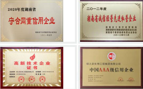 “和诚立信,竞超兴业”是绿之韵集团秉承的经营宗旨和行动准则。十九年来,绿之韵集团在胡国安董事长的引领下,坚持以规范为根本、以责任为使命、以品质为生命,立足健康可持续发展,维护消费者合法权益,传递行业正能量,不仅在企业品牌、战略、管理、文化等方面实现了大幅度提升,而且还不遗余力地为行业培养了许多行业精英人才,为民族品牌的良性发展与崛起贡献了自己的力量。绿之韵连续十多年被授予“湖南省守合同重信用单位”,连续多年被授予纳税信用A级荣誉,先后获评“中国驰名商标”“国家高新技术企业”“中国企业诚信经营示范单位”“中国AAA级信用企业”“湖南省诚信经营先进私营企业”“湖南省著名商标”“湖南名牌”等多项殊荣。胡国安董事长个人先后被授予“全国优秀中国特色社会主义事业建设者、全国先进爱国企业家、全国优秀民营企业家、共青团中央“第四届中国青年创业奖”、共青团中央“希望工程25周年杰出贡献奖”、中华慈善总会“中华慈善突出贡献奖”、湖南省“五一”劳动奖章、湖南省“百名最美扶贫人物”、CCTV感动中国(湖南)十佳人物、湖南省人民政府颁发的一等功、长沙市人民政府颁发的二等功等国家、省市各级各类荣誉200多项。